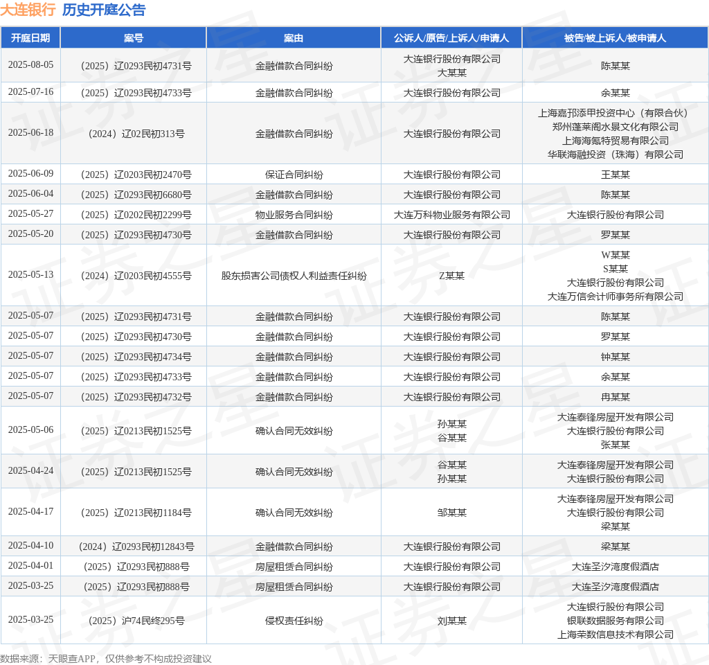 本站消息,根据天眼查APP显示,近日公布了一则大连银行股份有限公司作为原告/上诉人的开庭公告,详细内容如下: